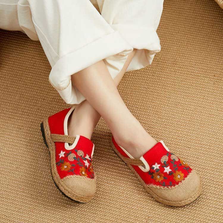 スリッポン 即購入OK エスパドリーユ 花柄 刺繍 レディース 麻 リネン ジュート シューズ 靴 春夏 涼しげ 涼しい くつ 軽量 通気性抜群 ナチュラル スニーカー 歩きやすい ペタンコ チャイナ風シューズ zhangban193 | オキナ商店