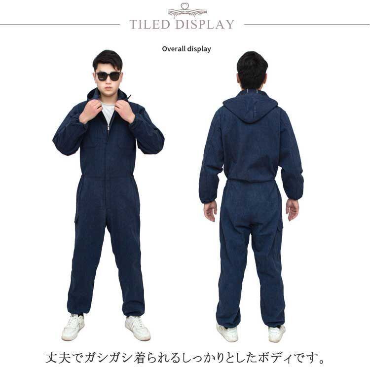 つなぎ デニム 長袖 作業着 未使用 フード付き オールインワン ツナギ 男性用 オールシーズン DIY 作業服 仕事着 ワークウェア ジャンプスーツ アウトドア DIY ガーデニング 農作業 yunban155 | オキナ商店