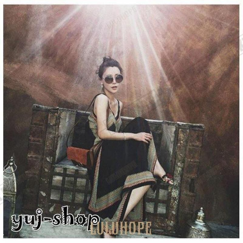 キャミワンピ レディース ノースリーブ マキシ丈 Vネック アシンメトリー エスニック柄 ワンピース オールインワン ゆったり オシャレ 春 夏