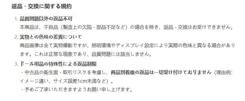 ドール用品の特殊性による返品制限