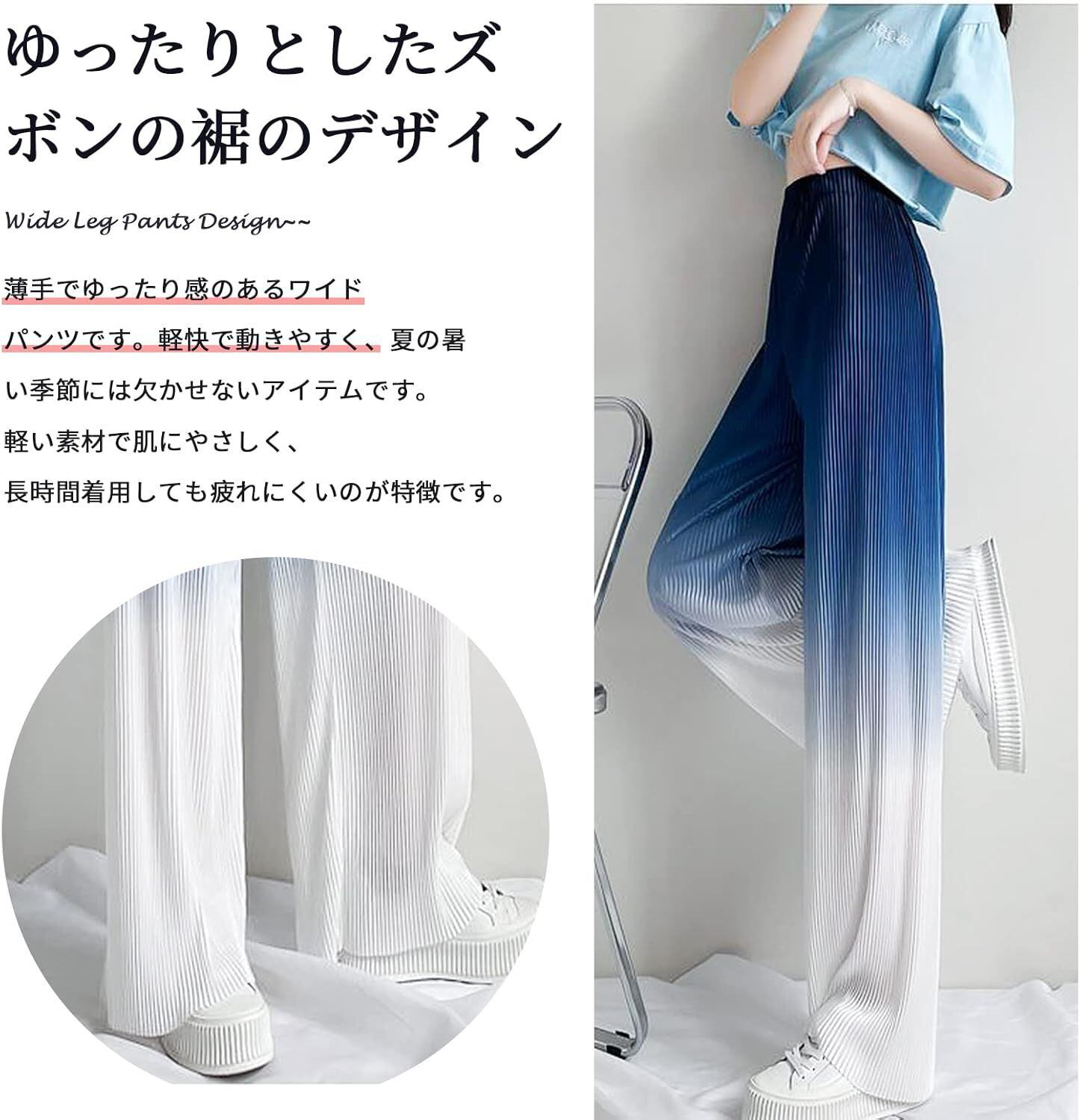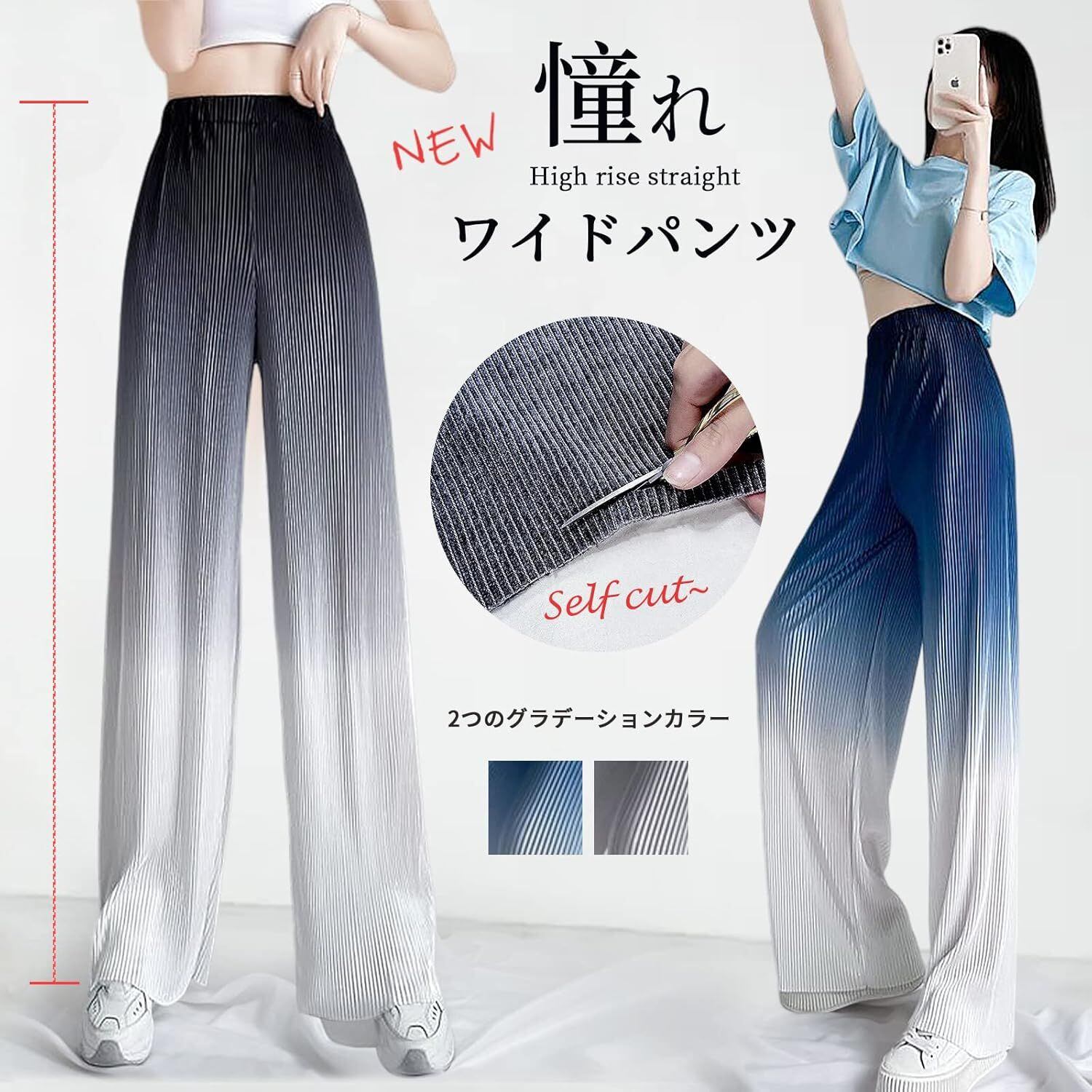 ワイドパンツ レディース ボトムス プリーツ グラデーション 薄手 ハイウエスト ストレート ひんやり 涼しい ファッション ゴム ロング プリーツ 美脚 着痩せ 長ズボン 落ち感 春 夏 秋 zhangban168 | オキナ商店