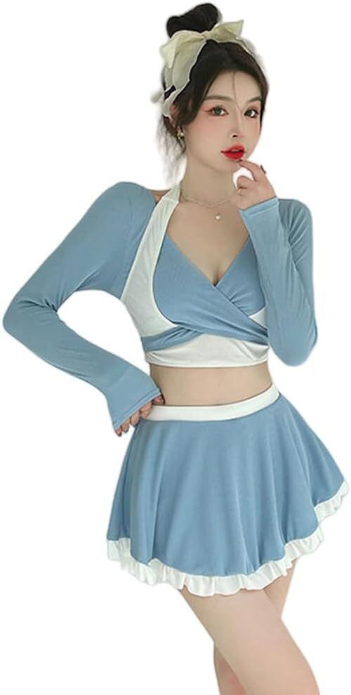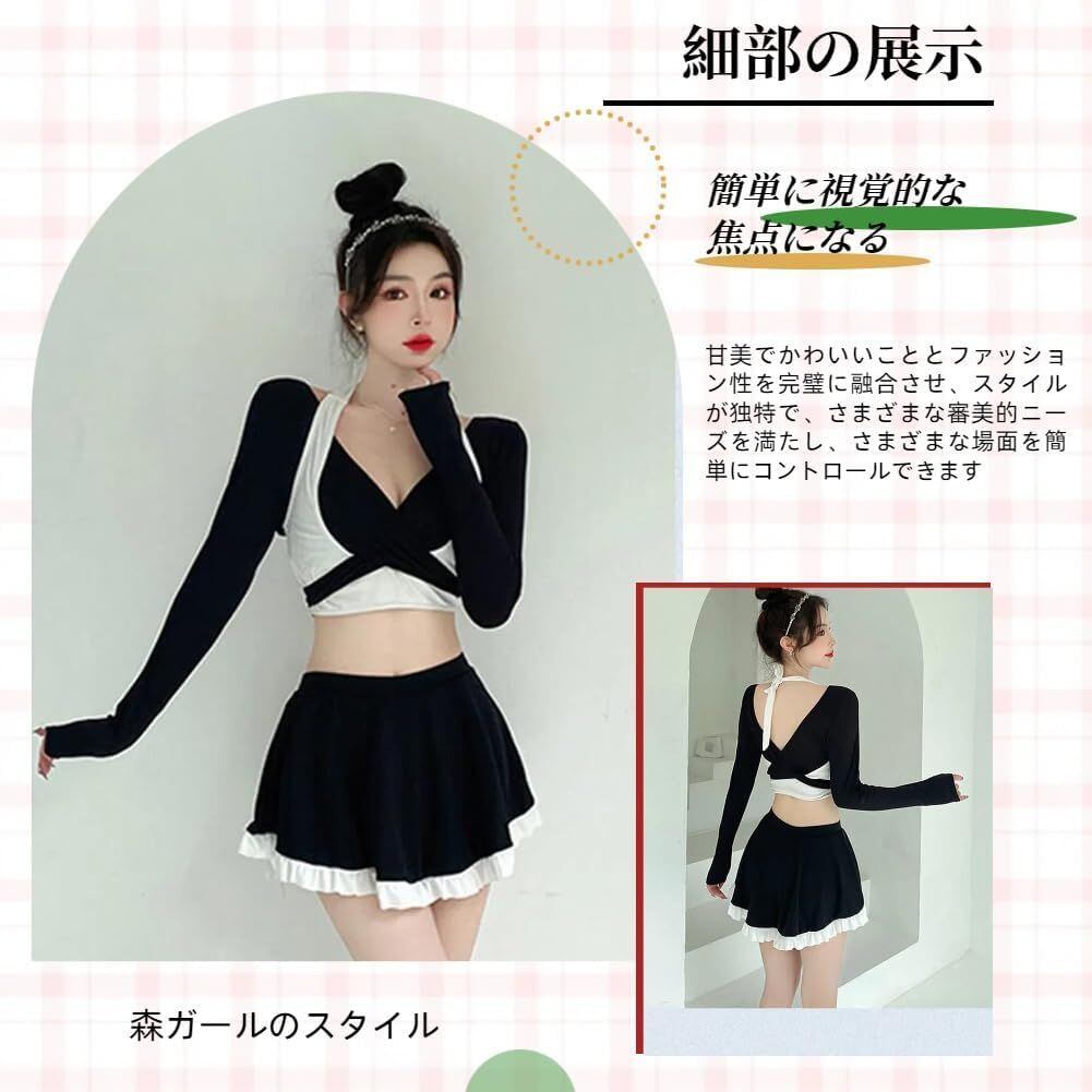 水着 レディース タンキニ セパレーツ 2点セット トップス ミニスカート 長袖 クロス デザイン感 体型カバー 背中開き セクシ 可愛い ロリータ 女性用水着 水陸両用 軽量 速乾 ビーチ 海水浴 温泉 旅行 zhangban155 | オキナ商店