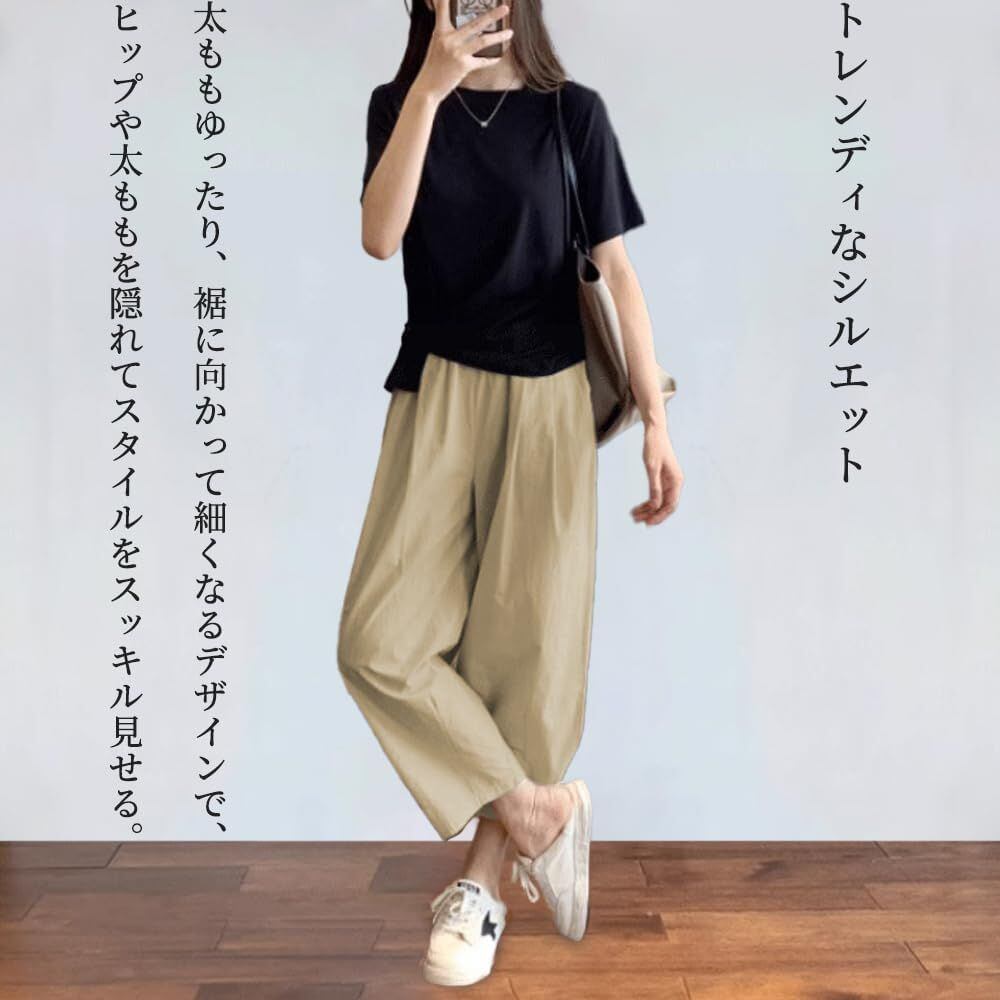 【ご注意:圧縮パックに入れてお届けしますので、シワが生じる場合がございます。使用する前に、アイロンで整えて下さい。】【着せクロップドパンツ】太ももゆったり、裾に向かってやや細くなるシルエットで、ヒップや太ももを隠れてスタイルをスッキル見せる。