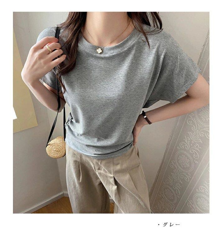 ドルマン tシャツ 未使用 レディース 春夏 クルーネック カットソー 伸縮性 ギャザー 半袖tシャツ カジュアル ゆるめ Tシャツ トップス インナー 白tシャツ 全6色 ソルマンtシャツ ソルマンスリーブ 着xkxiaoz134 | オキナ商店