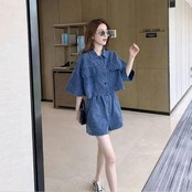 デニムセットアップ 未使用 レディース デニムジャケット ショートパンツ 夏 春 上下セット カジュアル 2点セット 半袖 おしゃれ きれいめ 無地 デニムパンツ ジージャン パンツスーツyunban67 | オキナ商店