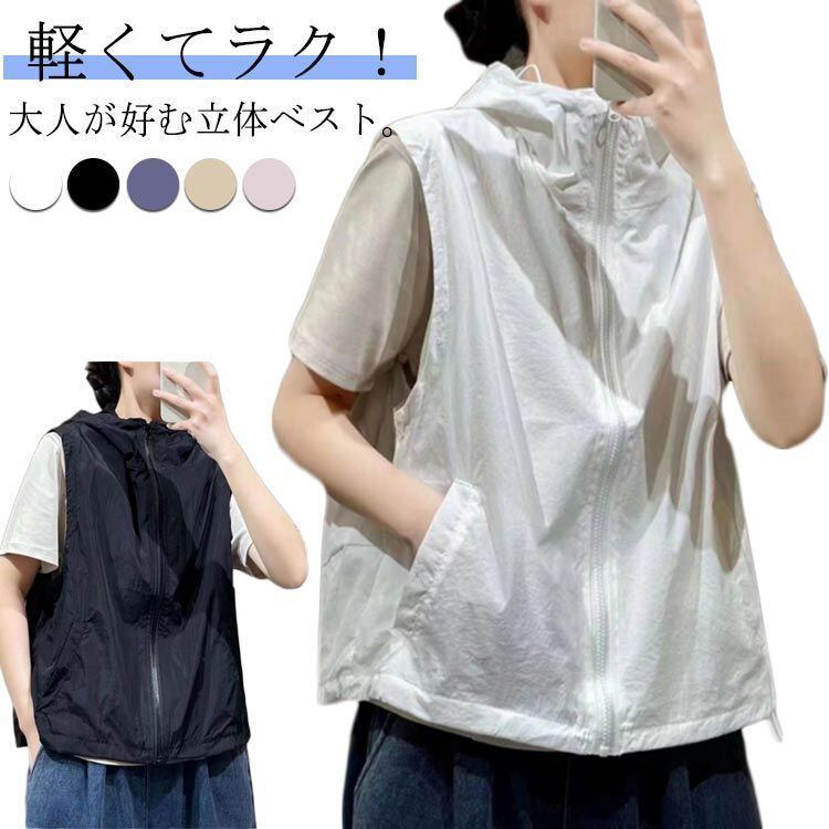 即購入OK ベスト レディース スポーツベスト メッシュベスト 夏 熱中対策 涼感 アウトドアベスト ファスナー 裏メッシュ フード付き Zipベスト スポーツ アウトドア レジャー 軽量 通気 速乾 お釣り zhangban117 | オキナ商店