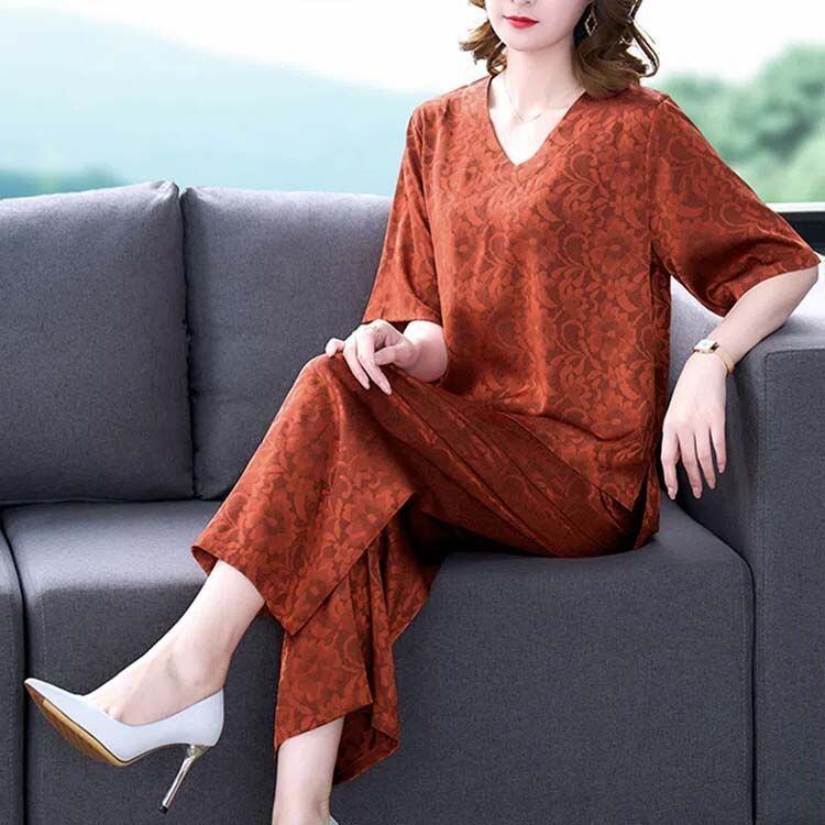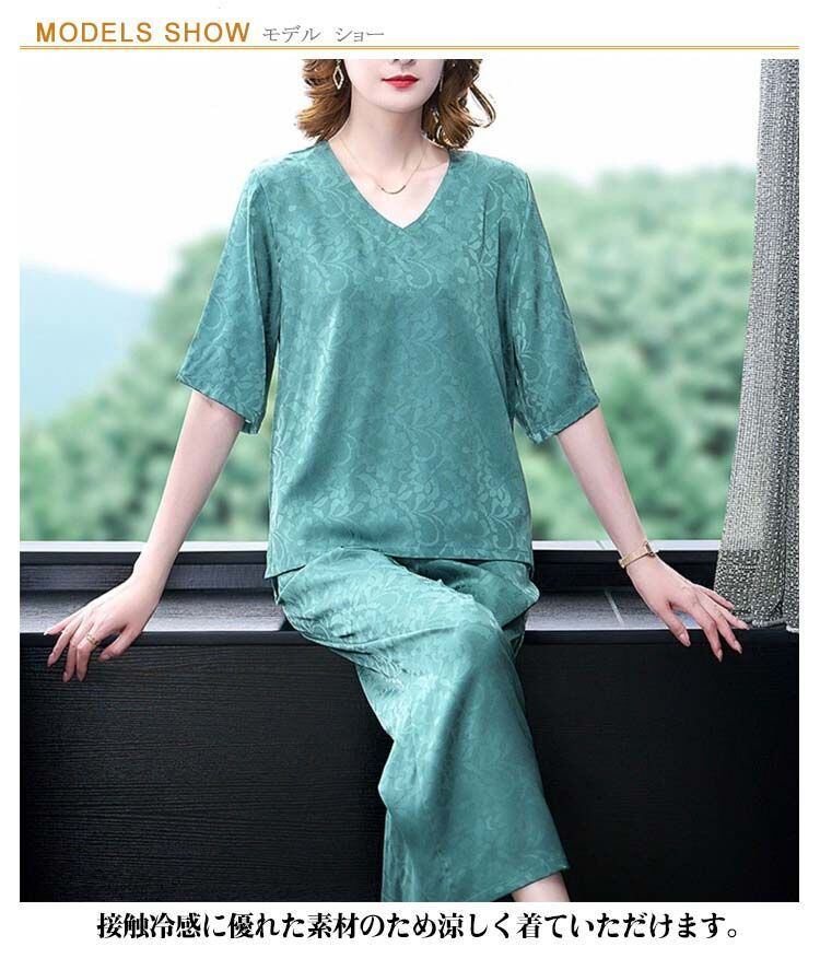 五分袖tシャツ 未使用 7分丈パンツ セットアップ レディース ルームウェア 部屋着 接触冷感 ひんやり 薄手 Vネック ブラウス プルオーバー 春 夏 秋 ゆったり 敬老の日 散歩 上品yunban73 | オキナ商店