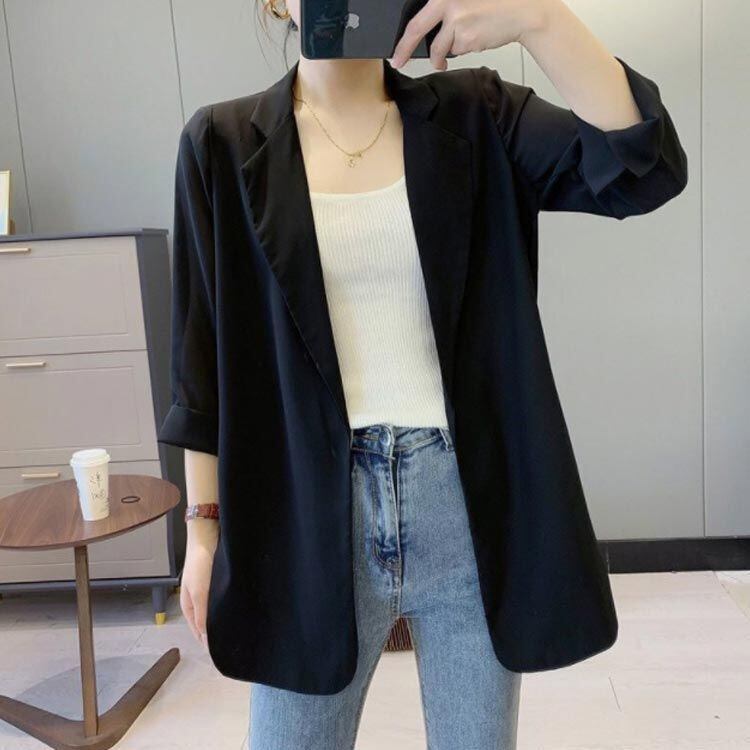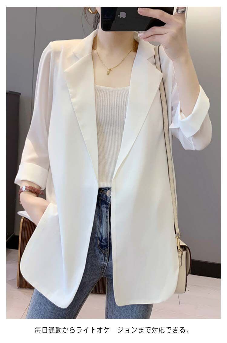 サマージャケット 未使用 レディース 七分袖 シフォン テーラードジャケット 夏 薄手 アウター 40代 50代 七分袖 夏服 春服 ビジネス オフィスカジュアル 黒 白 通勤 ロング 大きいサイズ yunban116 | オキナ商店