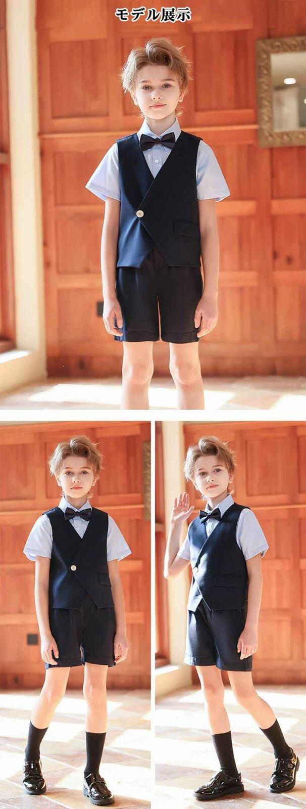 キッズ スーツ 子供 即購入OK 男の子 おまけ ブートニエール フォーマル ベスト 半袖シャツ 蝶ネクタイ付き セットアップ 結婚式 発表会 七五三 卒園式 入学式 子供服 110 120 130 140 150 160 170 180 sjxz82 | オキナ商店