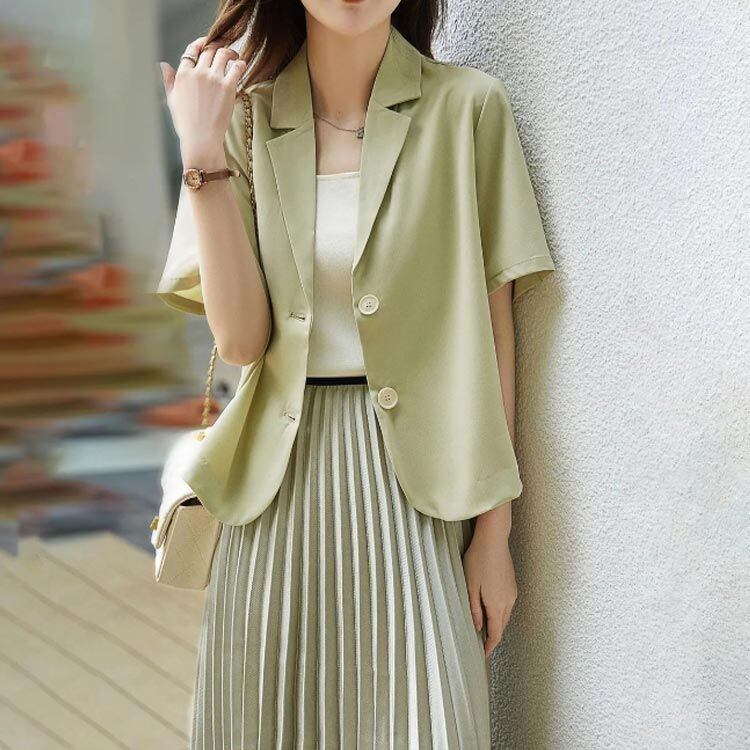 通勤 テーラードジャケット 未使用 夏 テーラードジャケット レディース ショート丈 オフィス サマージャケット 半袖 サマーブレザー 通勤 半袖 サマー ブレザー 薄手 薄手 ブレザー カジュアルジャケット yunban98 | オキナ商店