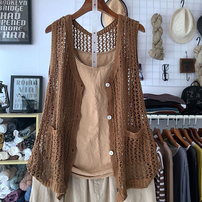 かぎ編み ベスト レディース カーディガン 綿 ニットベスト 春夏 クロシェ編み トップス 透かし編み レースベスト 羽織り レイヤードニットベスト 無地 透け きれいめ カジュアル レイヤード フェミニン 秋 刺繍 かわいい