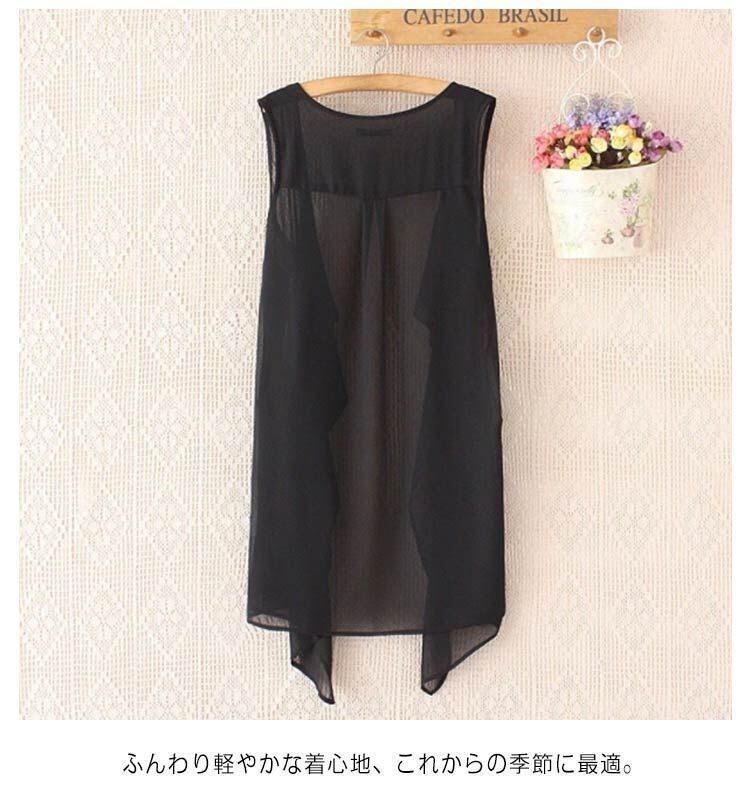 シフォンベスト 即購入OK レディース シフォンカーディガン サマーカーディガン ノースリーブ 透け感 ドレープ 薄手 袖なし 着やせ 薄手 春夏 体型カバー 黒 ブラック 重ね着 レイヤード 大人 zhangban140 | オキナ商店