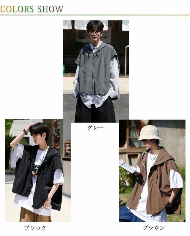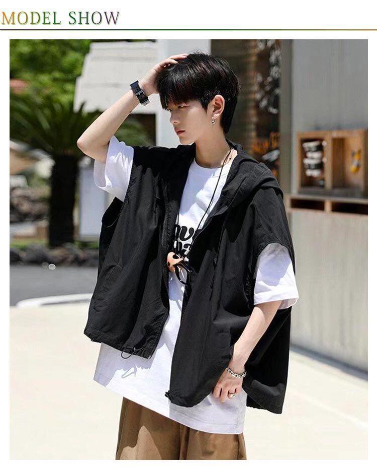 即購入OK ノースリーブパーカー メンズ サマーベスト 前開き フード付き 前開ベスト ジップアップパーカー ジップアップ カーゴベスト オーバーサイズ 大きいサイズ カジュアル ストリート系 S M L XL zhangban123 | オキナ商店