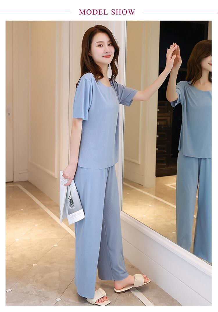 ルームウェア 上下セット レディース 部屋着 半袖 トップス セットアップ ストレッチ パジャマ 無地 冬 ナイトウェア 寝巻き ホームウェア 室内着 Tシャツ 長ズボン ロングパンツ 涼しい 通kongban34 | オキナ商店
