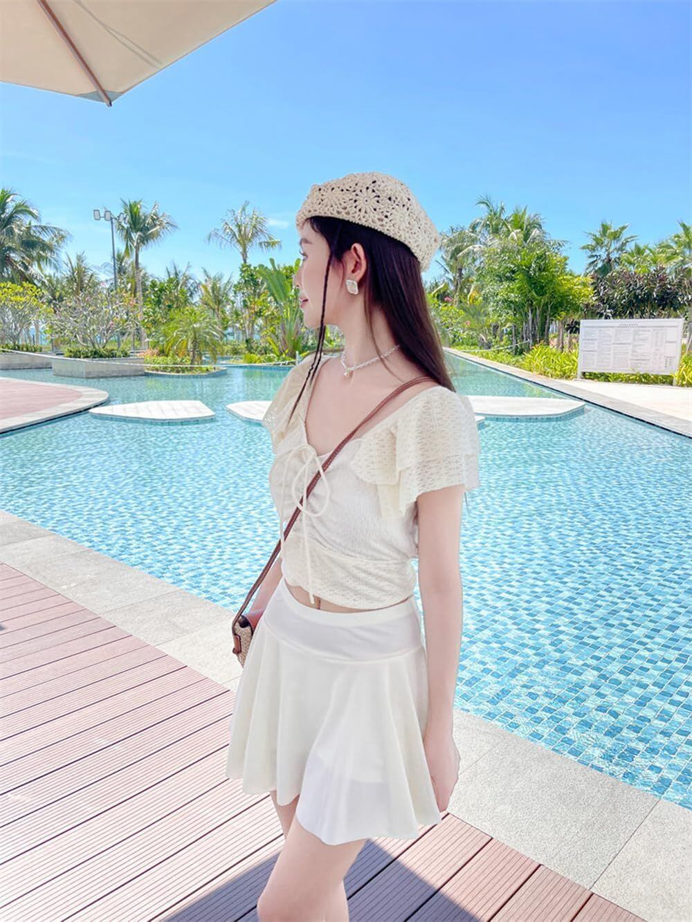 【セット内容】2点セット:半袖トップス(胸パッド付き)+スカート(裏地付き)
