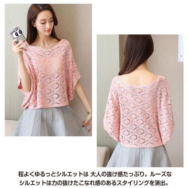 シアーニット 送料無料 サマーニット 体型カバー ドルマン レディース 透かし編み プルオーバー 半袖 きれいめ ゆったり ボートネック カジュアル リラックスコーデ シンプル トップス かわいいkongban23 | オキナ商店