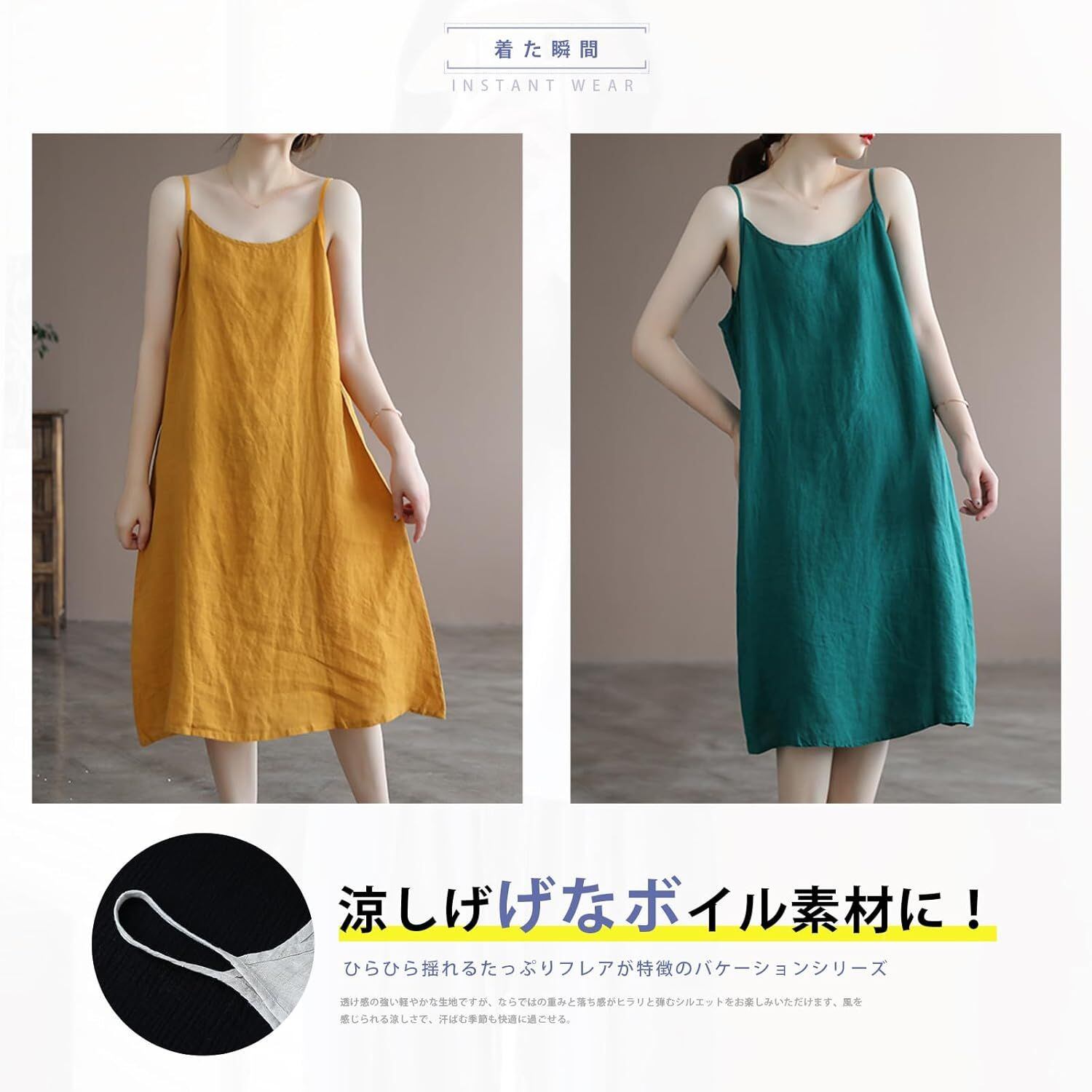 【良い着心地】涼しげなボイル素材に、ひらひら揺れるたっぷりフレアが特徴のバケーションシリーズ。 透け感の強い軽やかな生地ですが、ならではの重みと落ち感がヒラリと弾むシルエットをお楽しみいただけます、風を感じられる涼しさで、汗ばむ季節も快適に過ごせる。このキャミソールドレスの生地とても柔らかく、肌に優しいスリップです。お肌のデリケートゾーンなお方にも安心してお使いいただけます。
