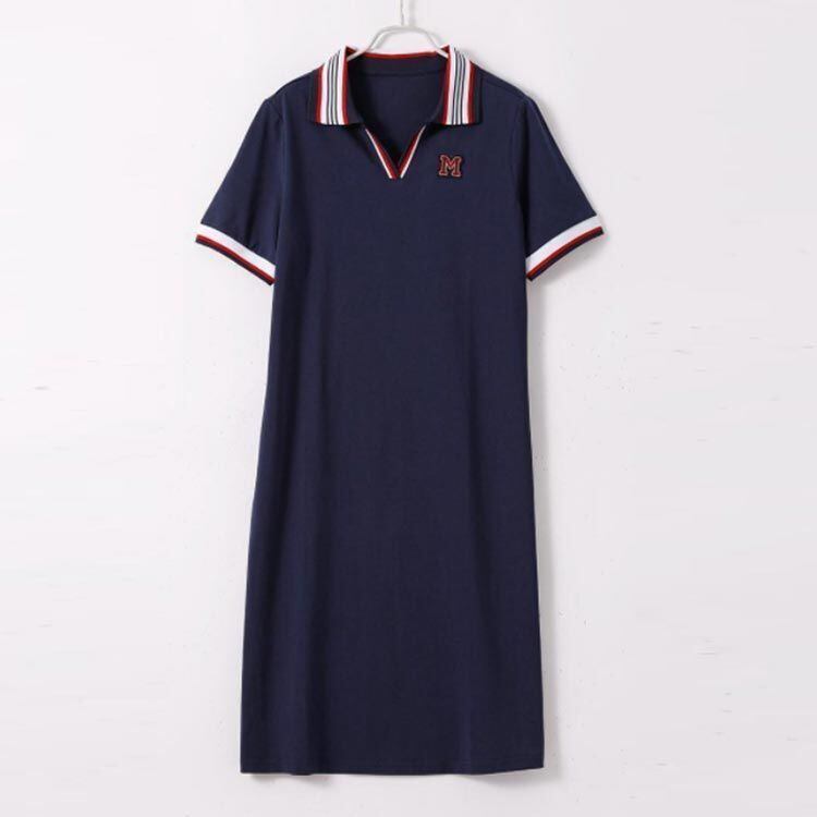 新品 ポロワンピース 未使用 レディース ポロシャツ 無地 ワンピース ゴルフウェア Vネック ポロ襟 ポロシャツワンピース ロングTシャツ 夏 涼しい Aラインスカート Aラインワンピース シンプル カジュアル yunban38 | オキナ商店