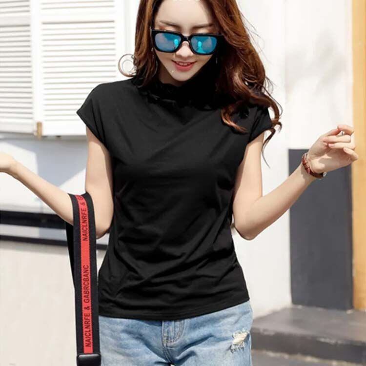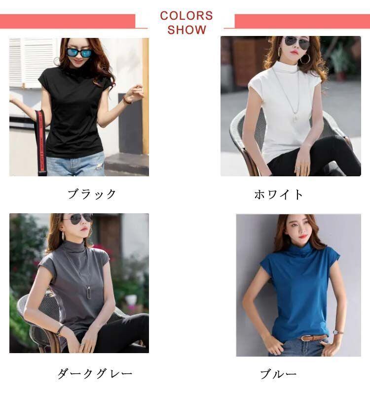 シンプルで着回しやすいハイネックフレンチスリーブトップス。肩先を覆うフレンチスリーブ。適度な肌見せが上品な印象。ノースリーブが苦手な方に特におすすめです。