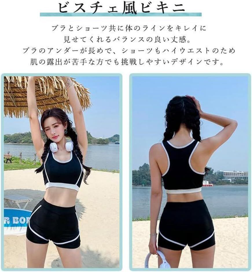 夏の定番、マリンスポーツにぴったりです。露出が苦手なあなたでも大丈夫なトップス付水着3点セットです。