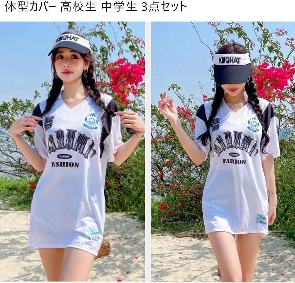 水着 即購入OK レディース 体型カバー 高校生 中学生 ゆったり 3点セットプール スポーティー ママ 水着 ラッシュガード 韓国 女の子 10代 20代 30代 海 可愛い おしゃれ zhangban79 | オキナ商店