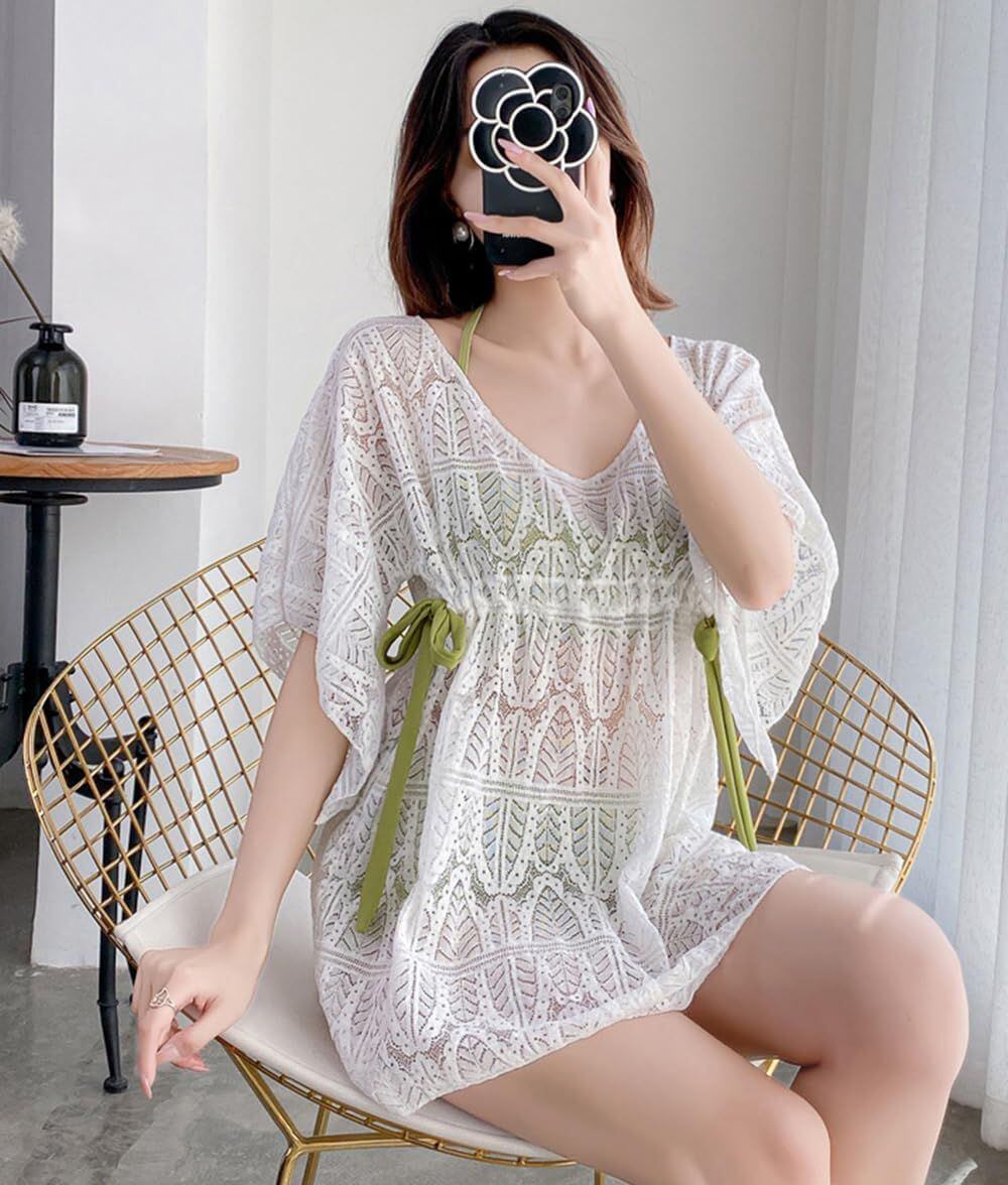 オーバーウエアは、ビーチで遊ぶことができ、直射日光を避け、プリントは非常にエスニックです。スッキリとしたホワイトカラーはどんな水着とも合わせやすいし、インナーにキャミソールやタンクトップを合わせれば普段着としても楽しめる。薄手生地素材で通気性に優れ、かけ心地も軽い水着カバーです。