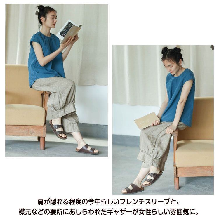 クルーネック 送料無料 トップス リネン 麻 ゆったり 半袖 ブラウス レディース 春 ナチュラル 夏 リネンタッチ プルオーバー きれいめ おしゃれ フレンチスリーブ 涼しい 大人 可愛いkongban19 | オキナ商店