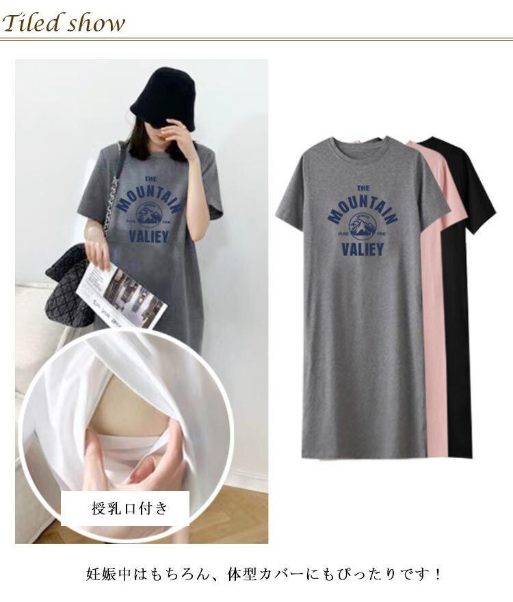 授乳口付き 未使用 マタニティ Tシャツ ワンピース パジャマ ルームウェア 授乳服 ロング丈 半袖 授乳口付きルームウェア 妊婦 ママ 妊娠 入院着 産前産後 部屋着 寝間着 春 夏 前開き 出産 入院 yunban42 | オキナ商店