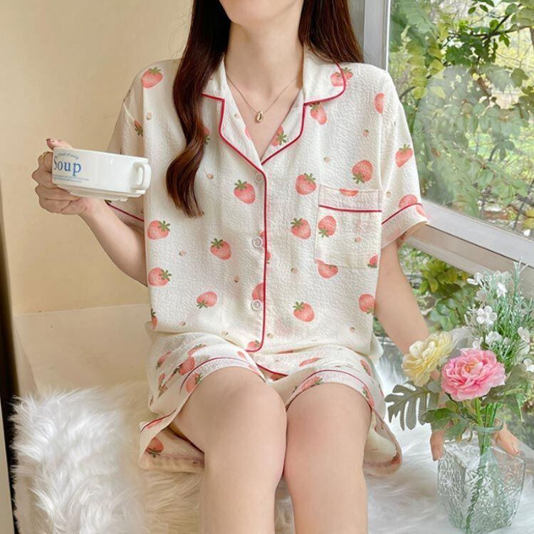 前開きのシャツと短パンのセットで夏用の部屋着、ナイトウェアにオススメです。