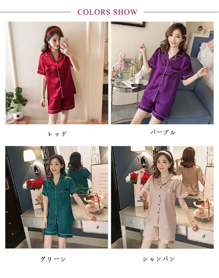 パジャマ 上下セット レディース ルームウェア ナイトウェア 半袖 トップス シルクタッチ 光沢 セットアップ 寝巻き ホームウェア 室内着 前開き おしゃれ 部屋着 アイスシルク 涼しい 女性 女のkongban31 | オキナ商店