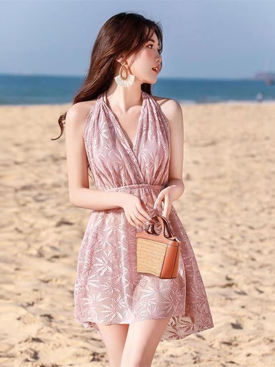 深Vの胸元と大きく開いた背中が、女性らしくセクシーな水着です。Vネックとホルターネックデザインは、体型を引き締めてスリムな印象を与えます。また、痩身効果があり、着用者の体型を美しく見せます。透気性のある素材は、着用時に快適な肌触りを提供し、汗を素早く吸収して快適さを保ちます。胸パッドとワイヤレス設計で胸を優しくサポートします。さらにショートパンツも付属しているので、安心して水中アクティビティを楽しめます。