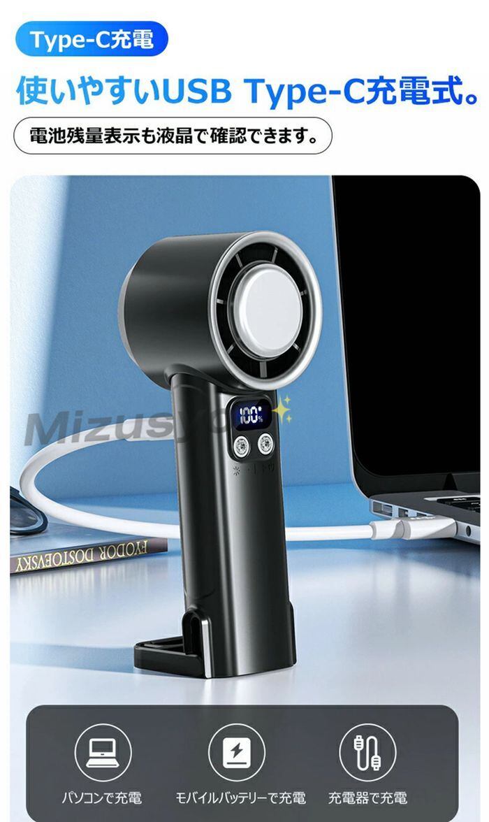 ハンディファン冷却 静音 首掛け 手持ち扇風機 携帯扇風機 大風量 超軽量 冷却ファン 冷却プレート付 100段階暴風 瞬間冷感 オススメ ハンド扇風機