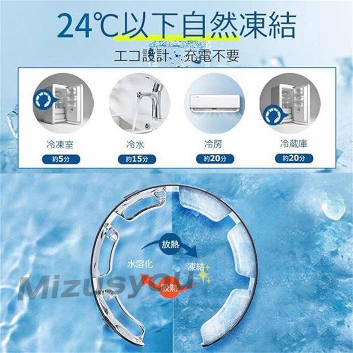 【自然凍結】クールネックリングは24℃以下で自然に凍結し、電気や給水などは一切不要で、省エネで、環境にもお財布にも優しいです。冷凍庫や氷で約20分間、冷蔵庫で約90分間、放置するだけで自然に氷結されます。気温30〜35℃程度では60〜120分程度持続します。