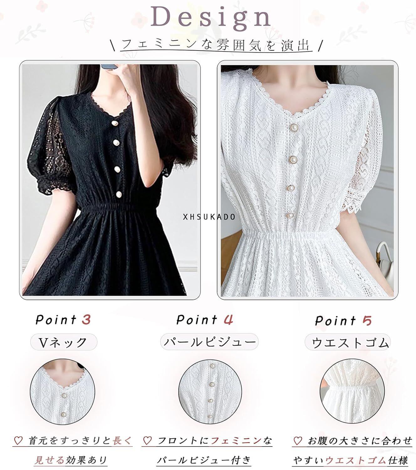 ワンピース 即購入OK レディース 夏 ミモレ丈 半袖 総レース Vネック パフスリーブ パールビジュー ウエストゴム フェミニン 大人 かわいい 着?せ ハイウエスト 無地 Aライン エレガント フェミニン 春 夏 お洒落 ファッション zhangban72 | オキナ商店