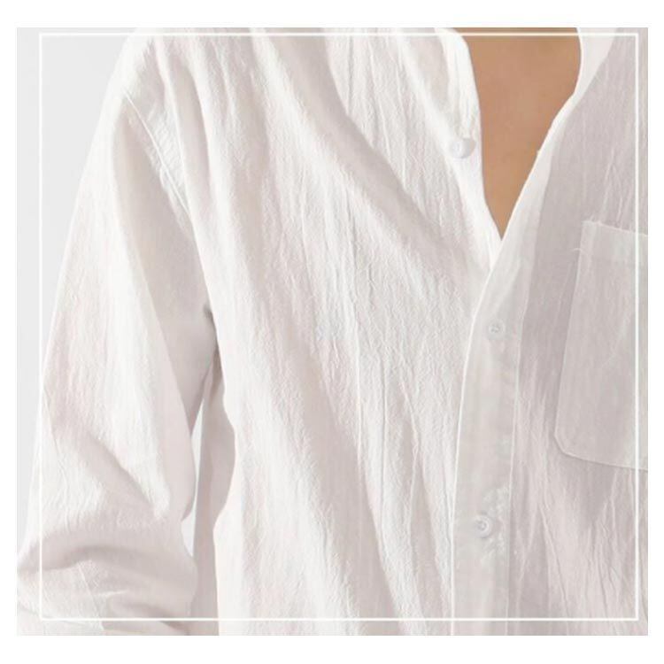 シャツ メンズ 即購入OK 長袖 綿麻 麻シャツ おしゃれ 大人 長袖シャツ トップス カジュアルシャツ 秋 薄手 無地 ナチュラル シンプル 紳士 トップス 服 父の日 春 夏 春服 前開き オフィス ゴルフ yunban19 | オキナ商店
