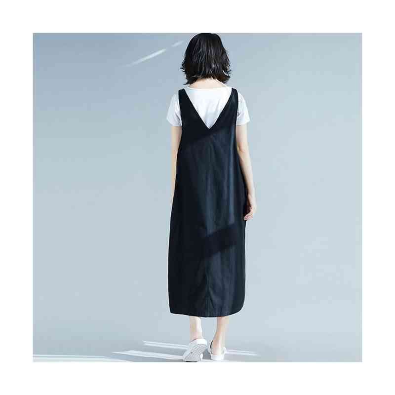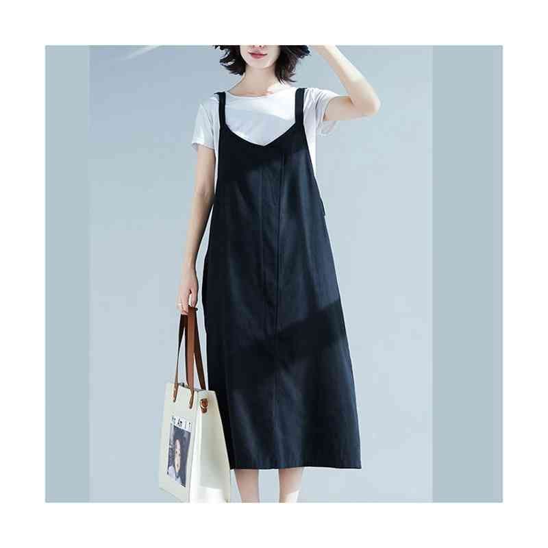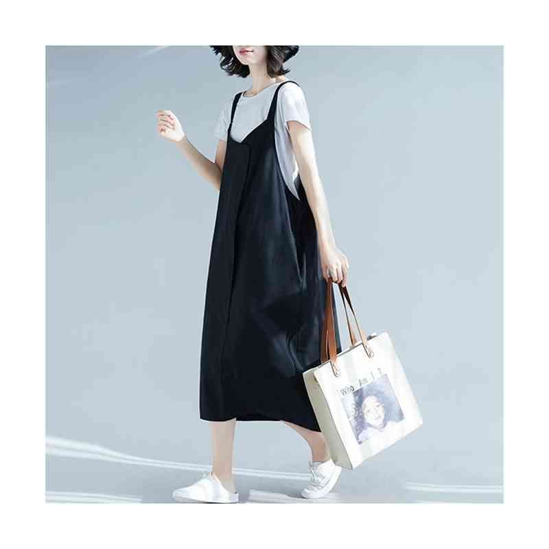 ジャンパースカート ロング 夏 ワンピース 綿混 レディース ロングワンピース Aライン 大人 ノースリーブ キャミソール きれいめ オフィス 夏ワンピ お洒落 体型カバー 無地 カジュアル ゆったり S M L XL 2XL