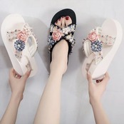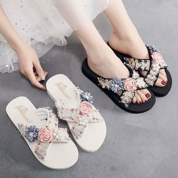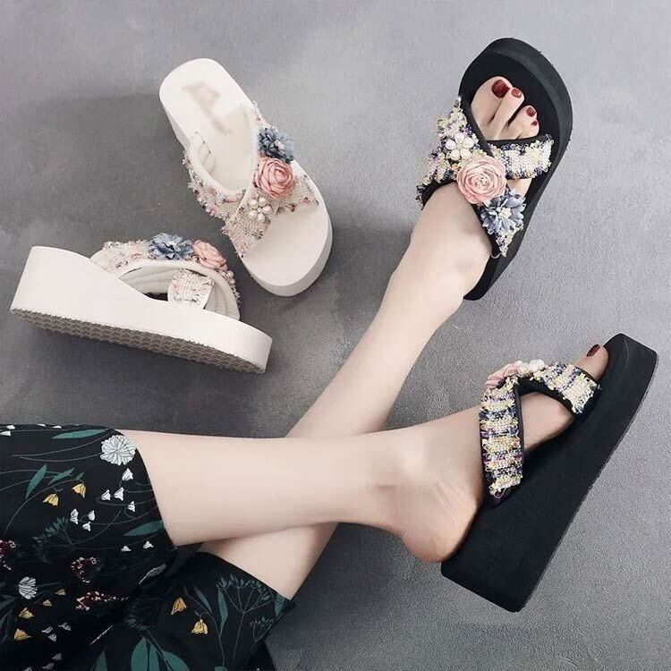 厚底 ビーチサンダル 未使用 スリッパ サンダル フラワー きれいめ 花柄 脚長効果 おしゃれ プール ビーチ かわいい ビーサン フラワーモチーフ 大人 プレゼント 海 美脚 リゾート 滑り止め 旅行 レ zhangban44 | オキナ商店