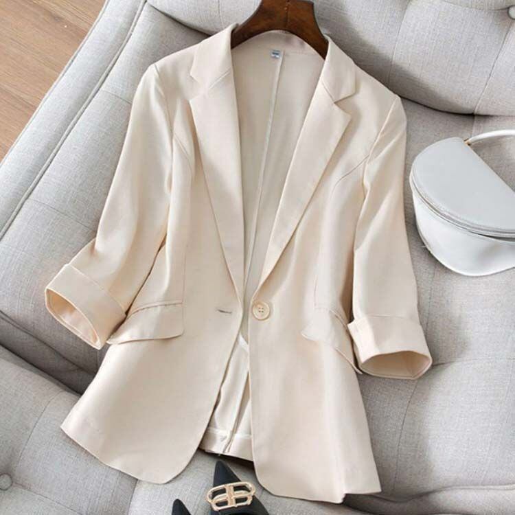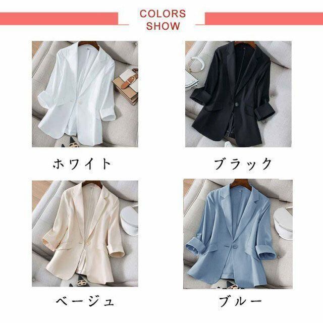 薄手 サマージャケット 即購入OK 夏 レディース 日除け 羽織り 七分袖 アウター シンプル キレイめ テーラードジャケット ショート丈 OL オフィス カジュアル 春 白 黒 青 ベージュ yunban01 | オキナ商店
