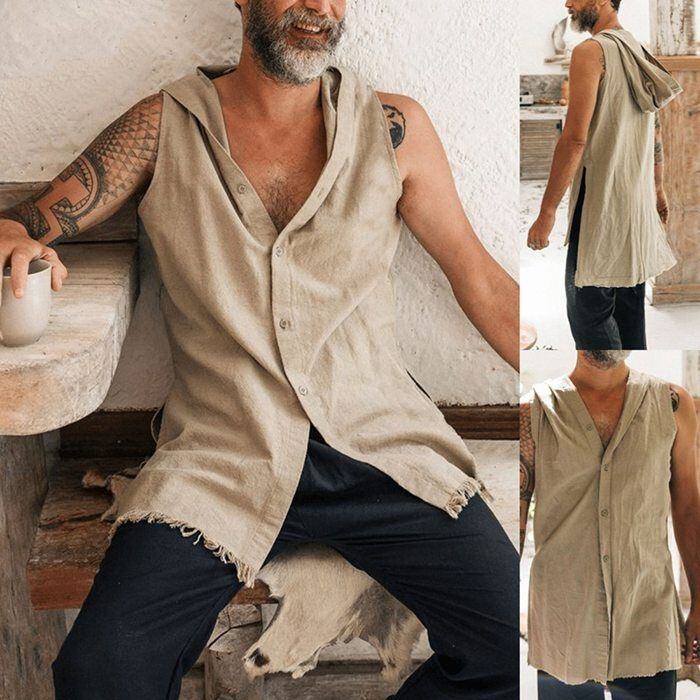 ベスト 即購入OK 綿麻風 メンズ フード付き 半袖 夏 トップス Vネック ゆったり 体型カバー シンプル 無地 カジュアル かっこいい おしゃれ きれいめ ファッション 春 秋 敬老の日 父の日 yeyishen05 | オキナ商店