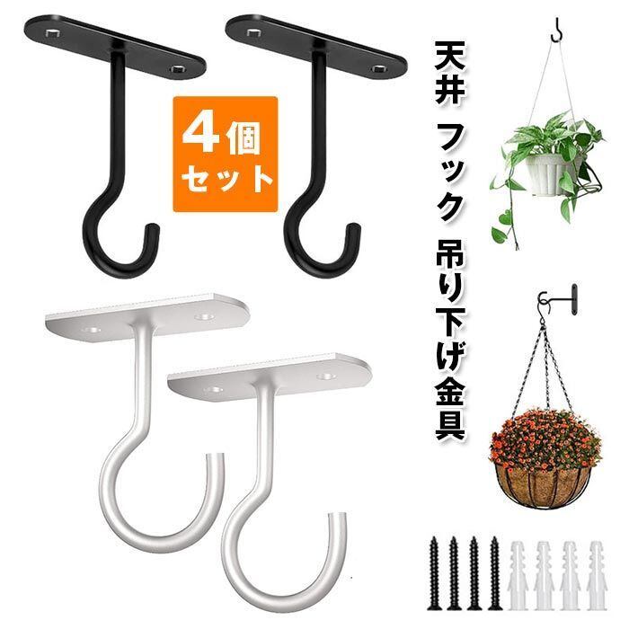 天井 フック 吊り下げ金具 4個セット J字 吊りフック 耐荷重約18kg 石膏ボード 壁掛け ピンフック 穴が目立たない ハンガーフック ハンギングプランター 植物 風鈴 吊るす 画鋲 ネジ 黒 白 unique24