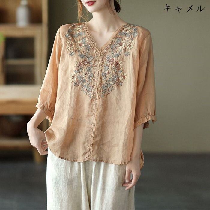 シャツブラウス 即購入OK レディース 40代 きれい 春夏 ブラウス リネン リネンシャツ トップス 半袖 リネンブラウス 綿麻 夏 チュニック 麻 着心地 大人 xzxiaoyun458 | オキナ商店