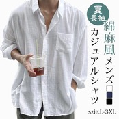 シャツ メンズ 綿麻風 長袖 夏 カジュアルシャツ 紫外線対策 ポケット付き ロング ゆったり 大きいサイズ 体型カバー シンプル カジュアル ビジネス 通勤 通学 かっこいい おしゃれ きれいめ ファッション 春 秋 白 黒 紺hanbin10