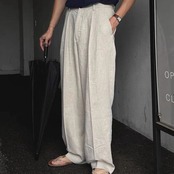スラックス 綿麻風 未使用パンツ メンズ ロング丈 夏 ズボン ロングパンツ ワイドパンツ ゆったり 大きいサイズ 体型カバー シンプル カジュアル ビジネス 通勤 通学 かっこいい おしゃれ きれいめ ファ hanbin11 | オキナ商店