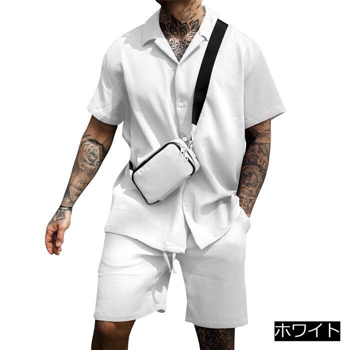 上下セット 即購入OK メンズ セットアップ 夏 オープンカラー 半袖 開襟シャツ ハーフパンツ ウエストゴム ゆったり 体型カバー シンプル 無地 カジュアル かっこいい おしゃれ きれいめ ファッション 春 夏 秋 yeyishen01 | オキナ商店
