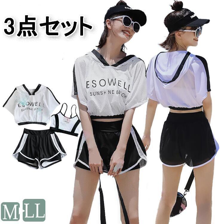 水着 即購入OK 3点セット 中学生 高校生 レディース 体型カバー 韓国 露出控え 大学生 女の子 大きいサイズ かわいい セパレート セットアップ 韓国風 ラッシュガード ガールズ スポーツ 夏 ショートパンツ プール フィットネス zhangban16 | オキナ商店
