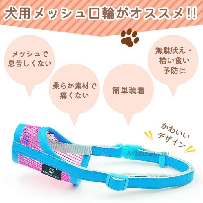 この「メッシュ口輪」は、愛犬の無駄吠えや拾い食いを防止し、安心して散歩や外出を楽しめるアイテムです。