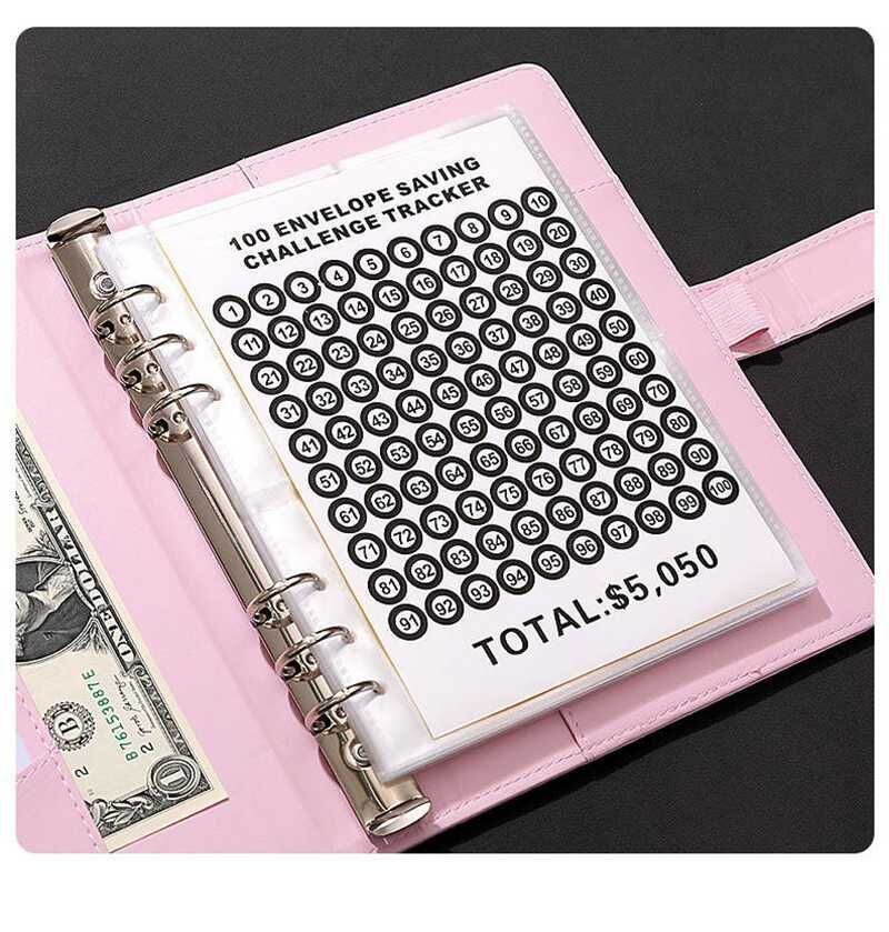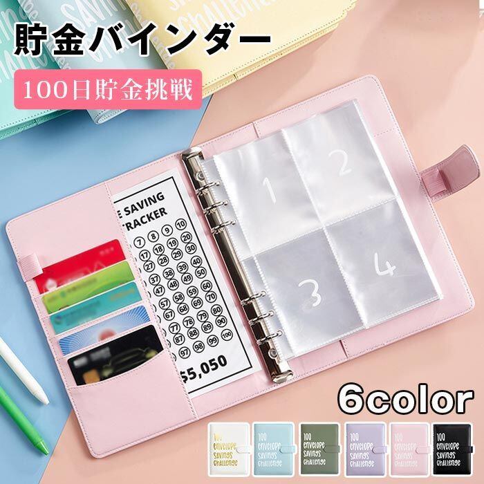 現金封筒付き 貯金バインダー 未使用 100日貯金挑戦 マグネット式 マネーバインダー ファスナー封筒付き PUレザー オーガナイザー 予算作成 お金を節約 予算プランナー 現金封筒 封筒付き貯金チャレンジブック unique26 | オキナ商店