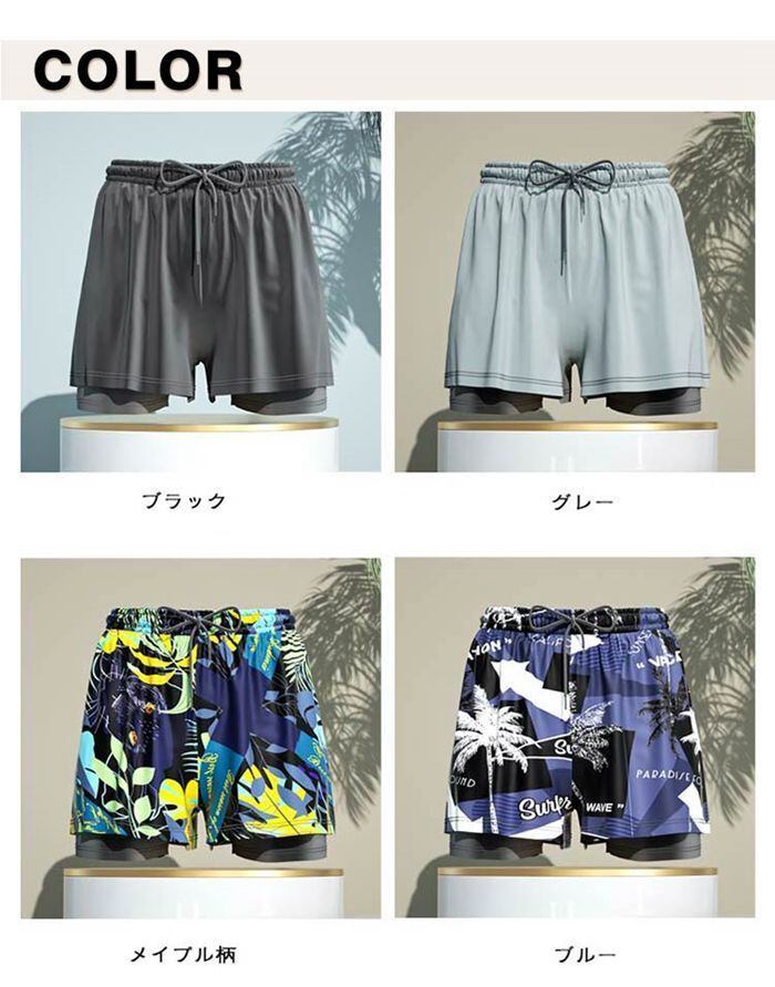 ボクサーパンツ メンズ水着未使用 スイムパンツ 海水浴 無地 透け防止 レジャー 水陸両用 インナー付き サーフパンツ 海水パンツ シンプル メンズ水着 ジム 通気性 ビーチ プール 旅行 スポーツxiaokb371 | オキナ商店