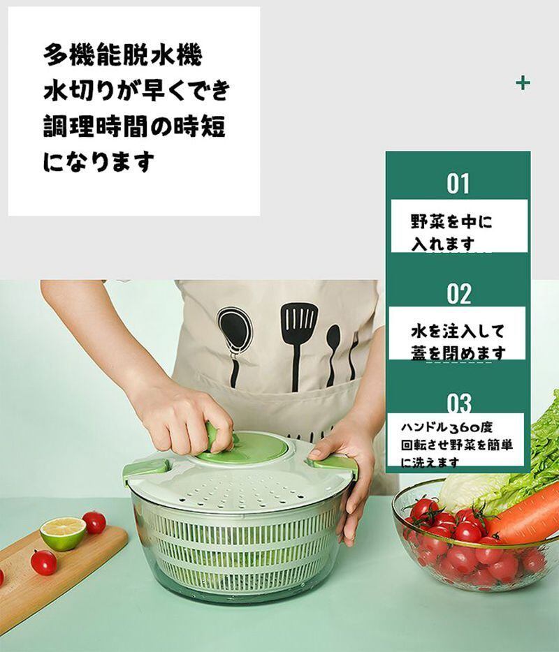 野菜 水切り器 サラダ水切り サラダスピナー 野菜脱水機 野菜の水切り 大容量 手動 回転仕様 時短 便利グッズ シンプル おしゃれ キッチン キッチン便利グッズ お手入れ簡単 調理器具 unique87