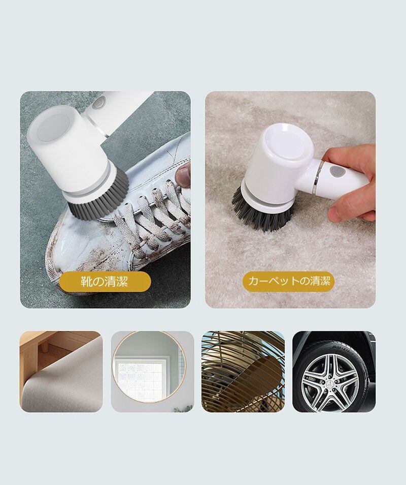 バスポリッシャー 電動掃除ブラシ 手持ち式 軽量 小型 6つ替えブラシヘッド付き 低騒音 充電式 風呂掃除 電動ブラシ 1500mAH 浴室電動ブラシ 強力 IPX7防水 替えブラシ 台所 お風呂掃除 ブラシ 電動 スポンジヘッド 靴 unique47